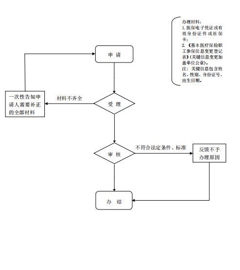 1、医保电子凭证或有效身份证件或社保卡;2、《周口市城镇职工基本医疗保险参保单位变更信息登记表》(加盖公章);