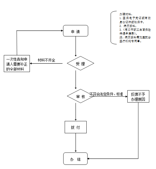 一、申报材料:1、身份证复印件; 2、银行卡复印件;3、住院病历复印件加盖医院红章; 4、费用总清单加盖医院红章;5、发票原件加盖医院红章;6、居民生育服务登记证。